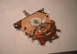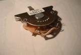 Now those of you that have been inside a guitar will recognize this as a Fender Strat 5-way switch that is used to select the pickups. The customer brought us the guitar complaining that his tone was changing when he played without touching any controls. He told us a well known Las Vegas “luthier” (and I use that term loosely) had just installed a new 5 way switch less than 2 months ago. Besides the horrible solder joints on the terminals, notice in the far right picture the red arrow is pointing to an intermittent solder bridge which is causing two pickups to be both on no matter what position the switch is set to. And those of you who have seen these switches before will notice how the “luthier” ruined the brand new switch by splashing solder on the wiper of the switch. (white arrow)
